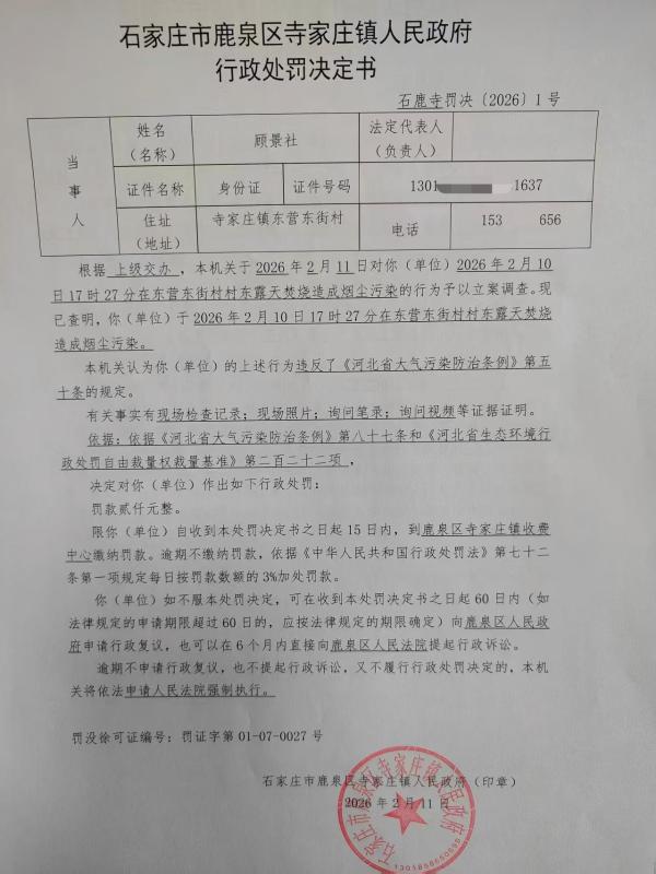 石鹿寺罚决〔2026〕1号