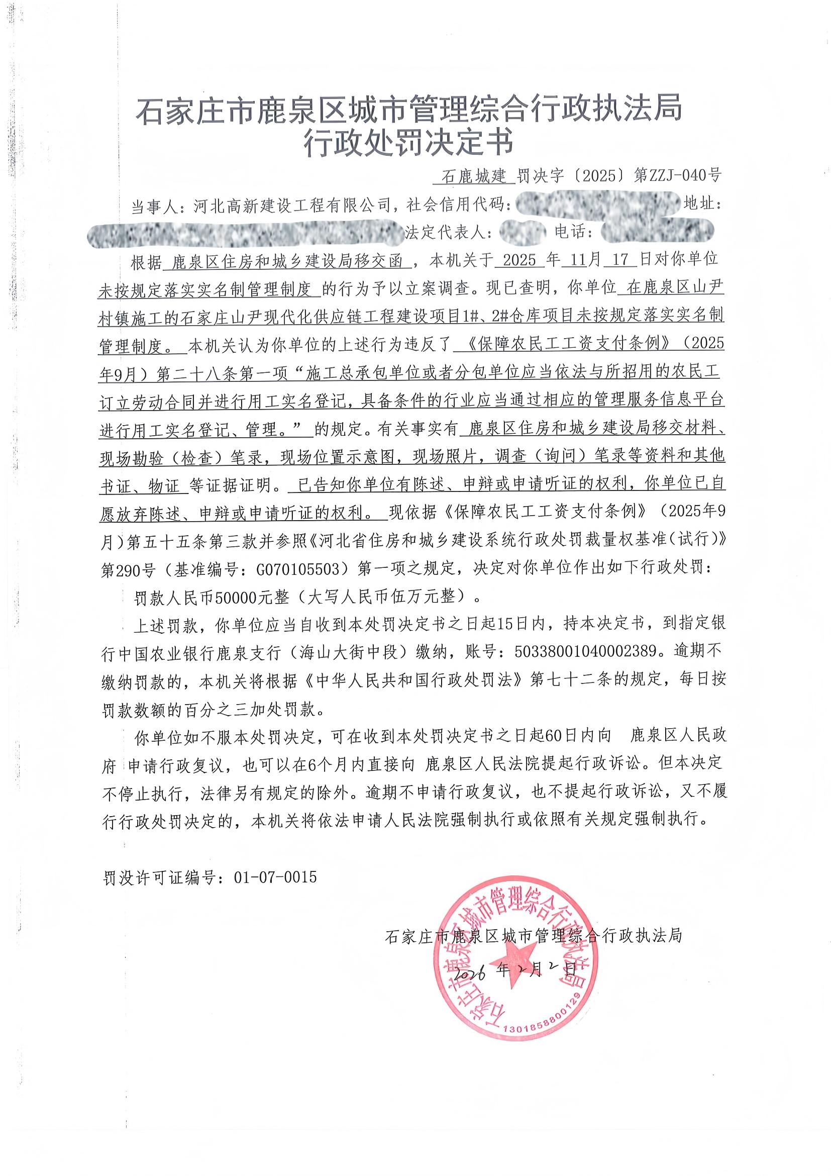 石家庄市鹿泉区城市管理综合行政执法局2025年度行政处罚公示ZZJ-040