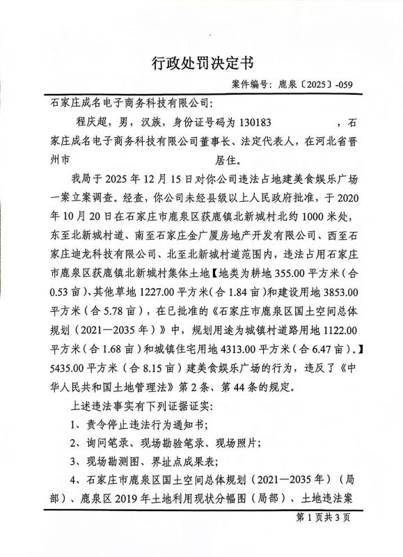行政处罚决定书鹿泉[2025]-059