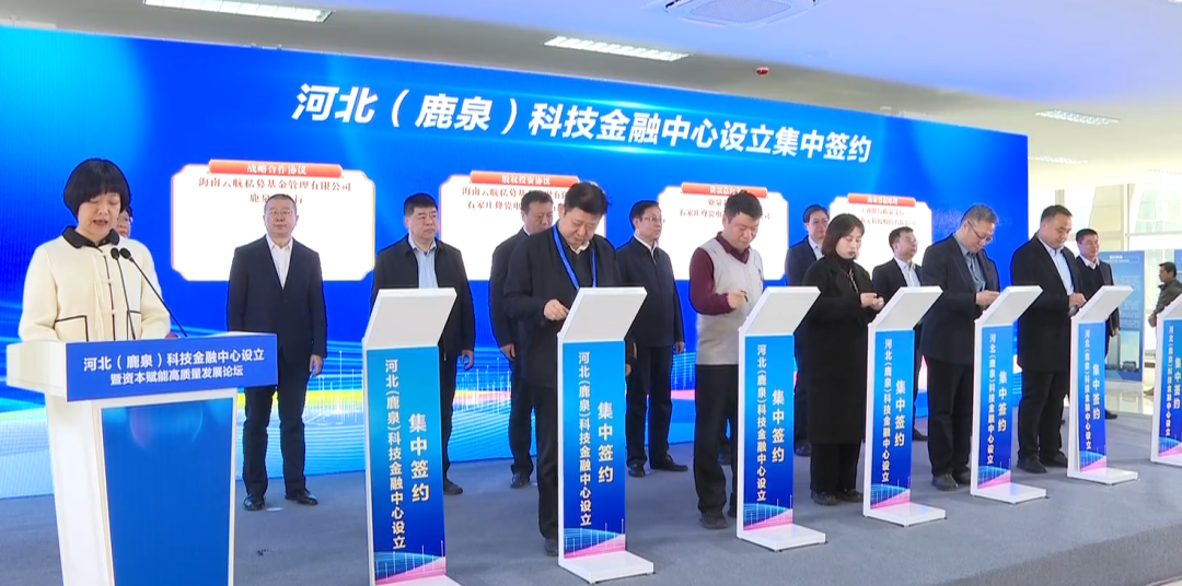 活动中,赵军会现场推介科技金融中心;与会领导一同为河北(鹿泉)科技金融中心揭牌。随后,区政府与北京知识产权运营管理有限公司、中关村协同发展投资有限公司、河北省征信有限公司、中国农业发展银行河北省分行营业部、河北银行股份有限公司、兴业银行股份有限公司石家庄分行6家机构进行战略合作签约;经济开发区与河钢集团供应链管理有限公司、北京立言金融与发展研究院、财达证券股份有限公司、第一创业证券股份有限公司4家机构进行战略合作签约;河北上市股权投资基金有限公司、石家庄军瓷股权投资基金、茂天(石家庄)创业投资中心、景县产业发展基金有限公司、石家庄凯润投资基金、名阳保险销售有限责任公司、河北融合保险代理有限公司7家入驻企业代表先后进行签约。海南云航私募基金管理有限公司、鹿泉农商行、石家庄烽瓷电子技术有限公司、工商银行鹿泉支行、中电新元科技股份有限公司5家创新金融产品及融资项目进行签约。