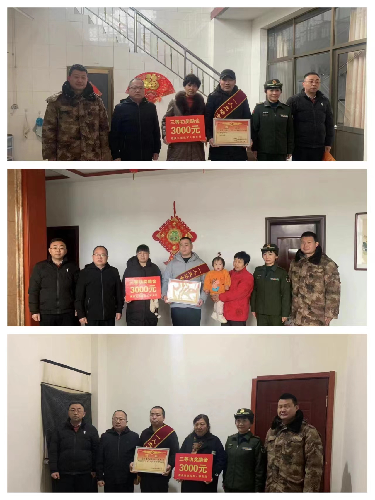 打印为弘扬拥军优属光荣传统,营造尊崇军人浓厚氛围。2月9日,鹿泉区武装部与区退役军人事务局分别来到寺家庄镇平南村、西龙贵、东营北街村为现役军人赵文龙、刘帆、高腾送去立功喜报,表达党和政府的祝贺与关怀,与军属共享荣耀与喜悦。区武装部副部长张雪璨,区退役军人服务中心主任刘占英及相关工作人员参加。一路上锣鼓喧天,左邻右舍纷纷赶来祝贺。区武装部副部长张雪璨和区退役军人事务局刘占英同志与赵文龙、刘帆、高腾及其家属亲切交谈,对赵文龙、刘帆、高腾在部队取得的优异成绩表示热烈祝贺,感谢军人家属为部队培养了优秀人才。赵文龙、刘帆、高腾三家表示,能有此份殊荣离不开党和政府的关心、离不开部队的精心培养,作为家属会继续支持他的工作,鼓励他们安心服役、扎根军营,为家乡人民增光添彩,为国防事业添砖加瓦。