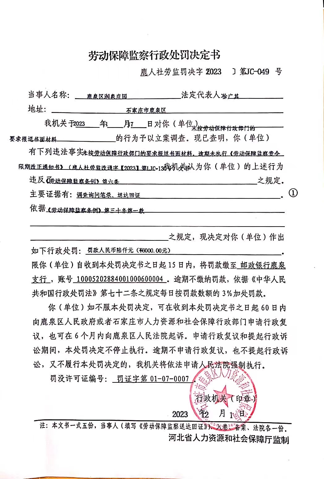 鹿人社劳监罚决字〔2023〕第JC-049号