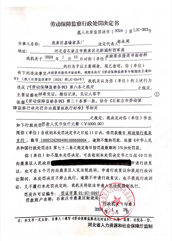 鹿人社劳监罚决字〔2024〕第LJC-003号