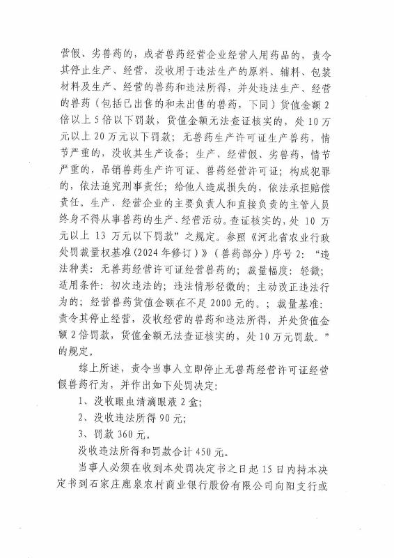 鹿泉区农业农村局行政处罚决定书