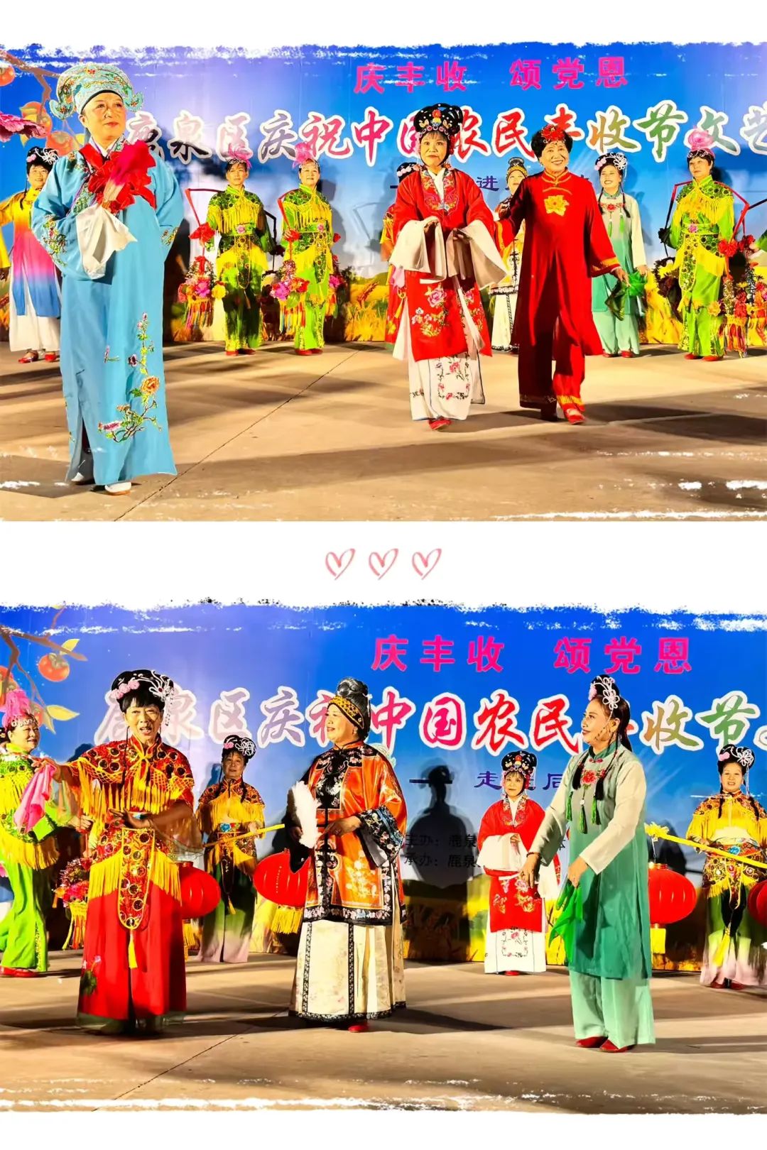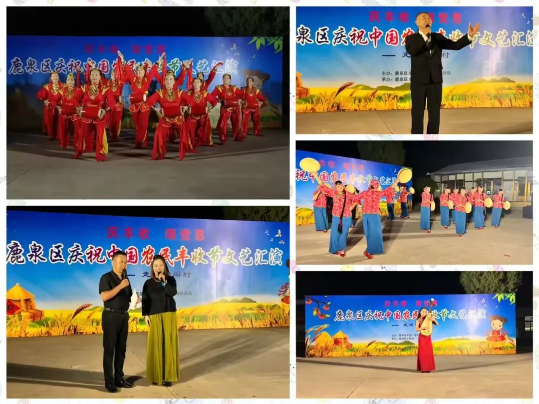 五谷丰登瓜果香,风吹稻浪丰收忙。9月24日晚,鹿泉区2024年庆祝中国农民丰收节文艺演出在鹿泉区李村镇同阁村举办。本次演出由鹿泉区文化广电体育和旅游局主办,鹿泉区文化馆承办。活动以“庆丰收送党恩”为主题,通过乐器演奏、歌曲、戏曲等勾勒出“丰年人乐业,陇上踏歌声”的丰收图景。博得了现场观众的阵阵欢呼与喝彩。