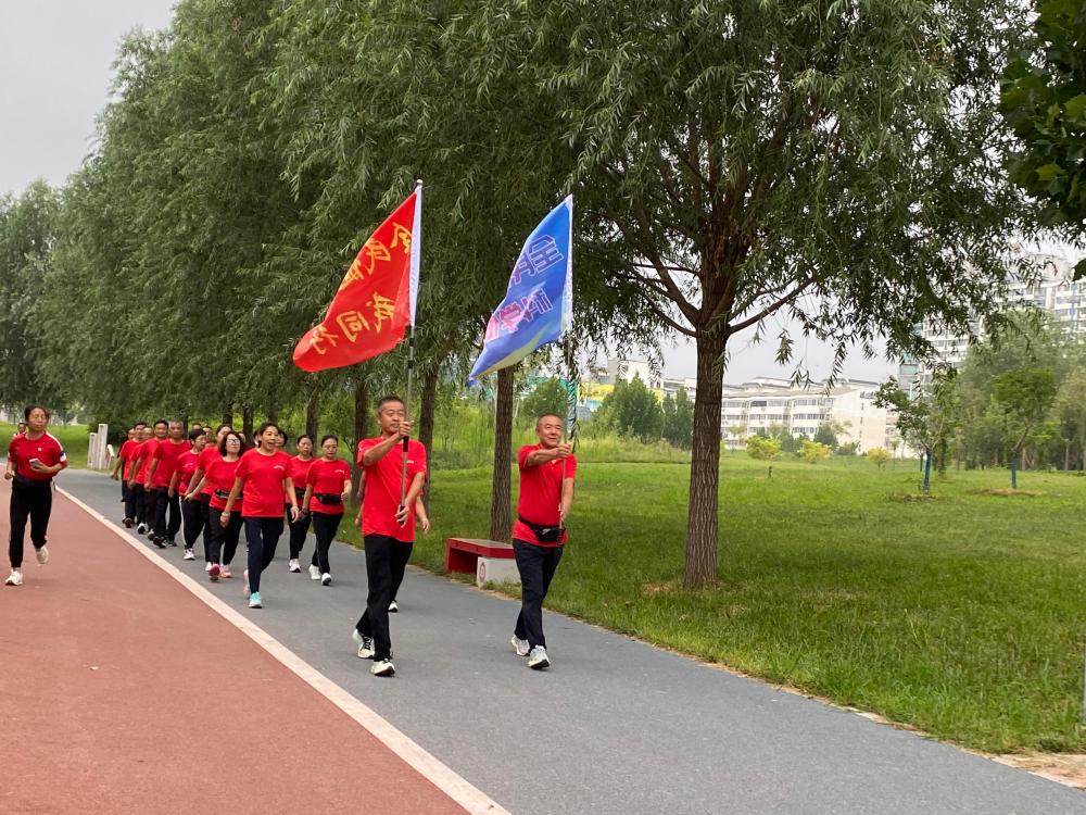 与此同时,在鹿泉区全民健身中心,群众健步走活动也热闹非凡。参与健步走的人群排着整齐的队伍,迈着稳健的步伐前行。一路上,大家欢声笑语,一边享受着运动带来的快乐,一边欣赏着沿途的美丽风景。