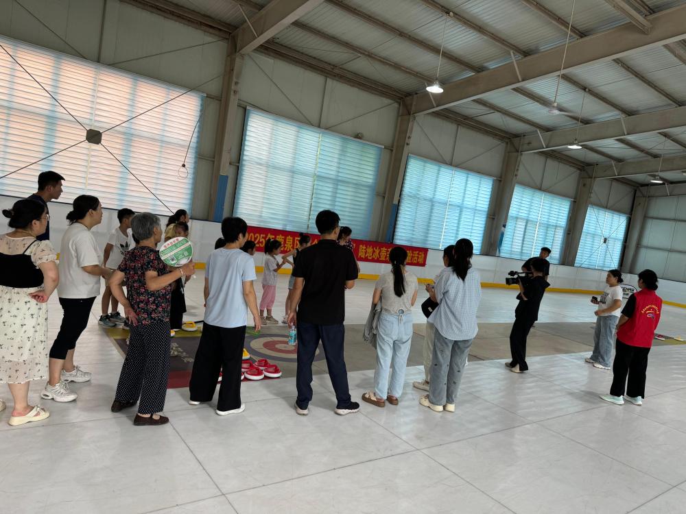而在鹿泉区滑冰馆,陆地冰壶比赛正如火如荼地进行着。赛场上,选手们全神贯注,精准地把控着冰壶的力度和方向。