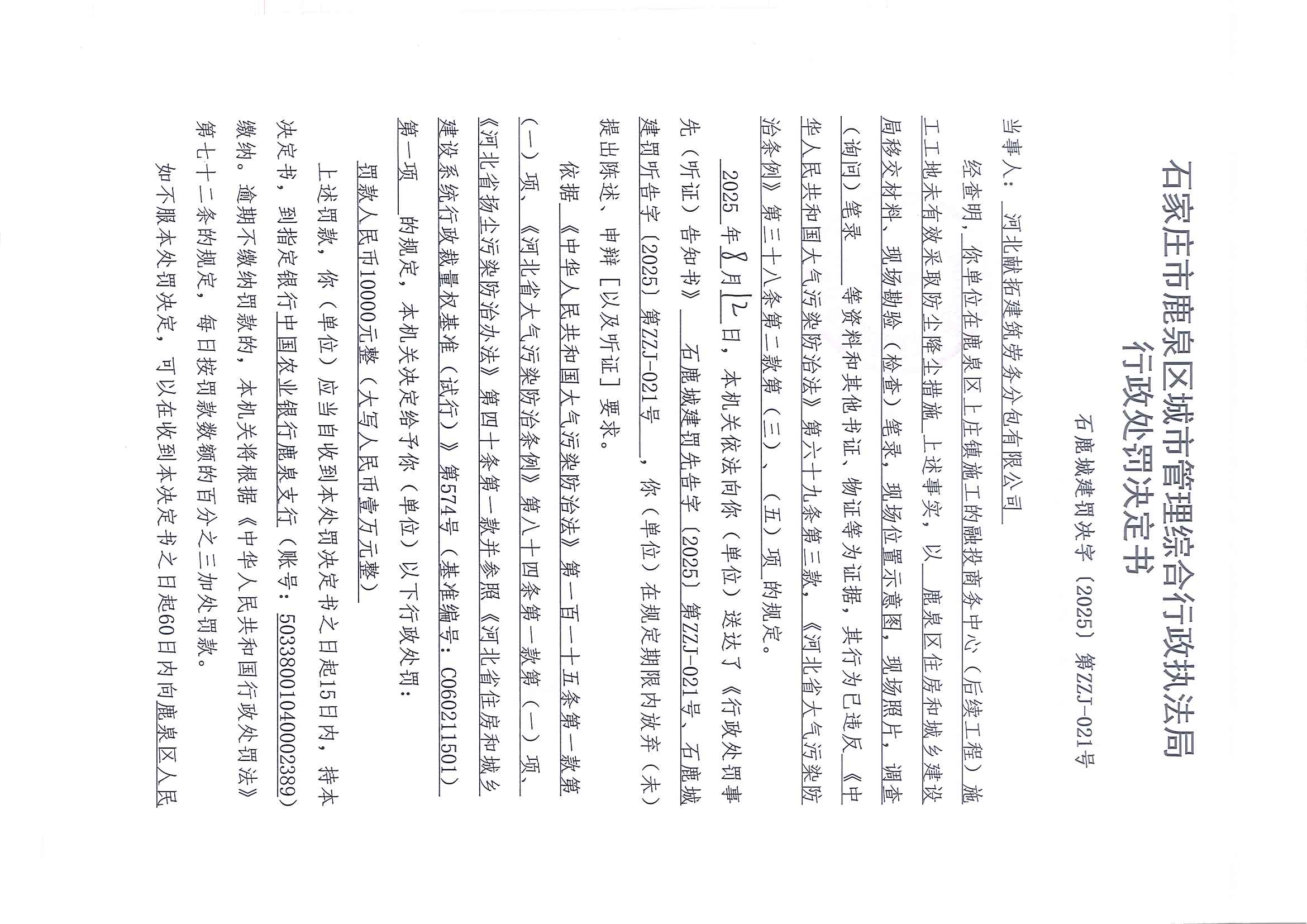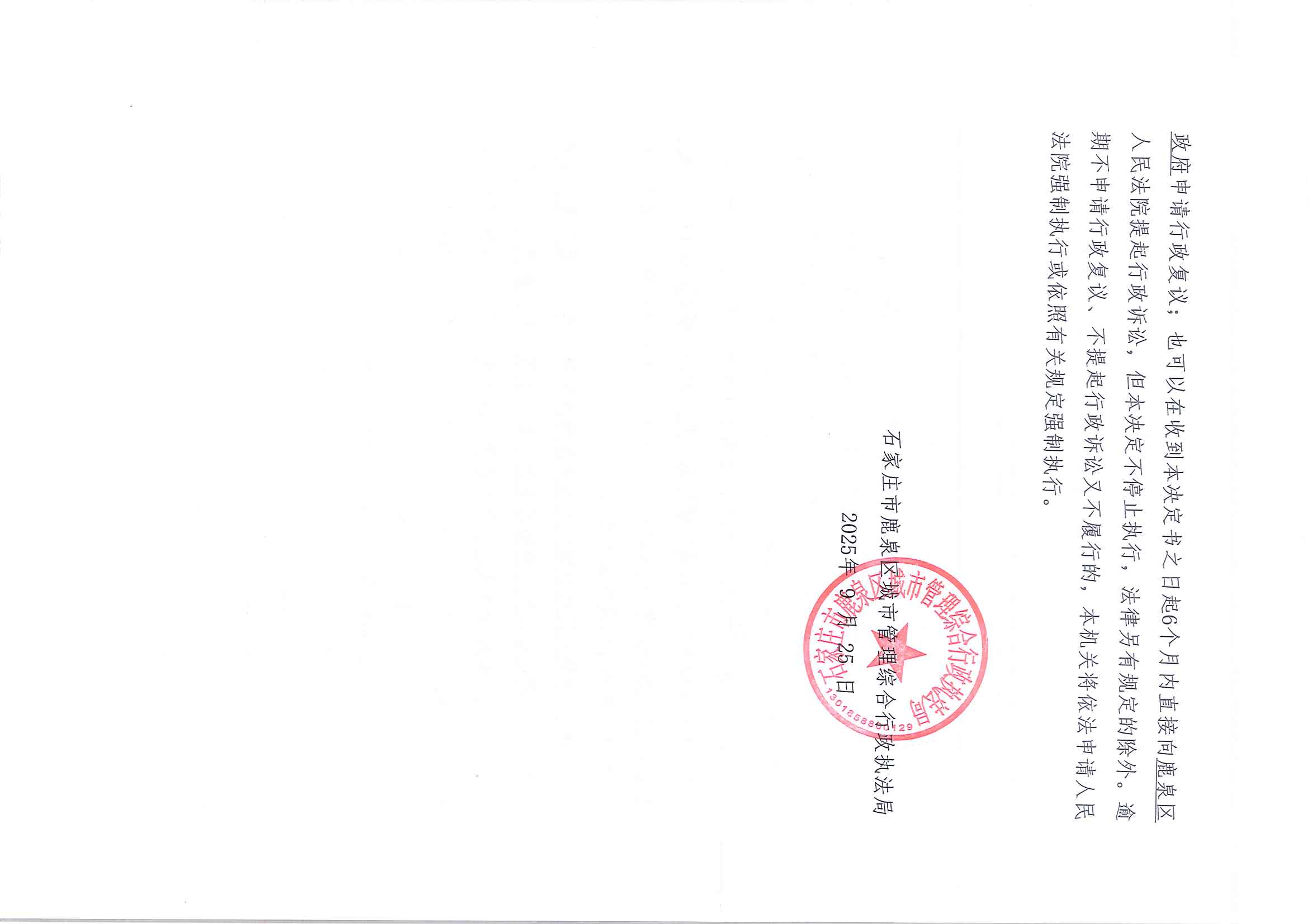 石家庄市鹿泉区城市管理综合行政执法局2025年度行政处罚公示ZZJ-021