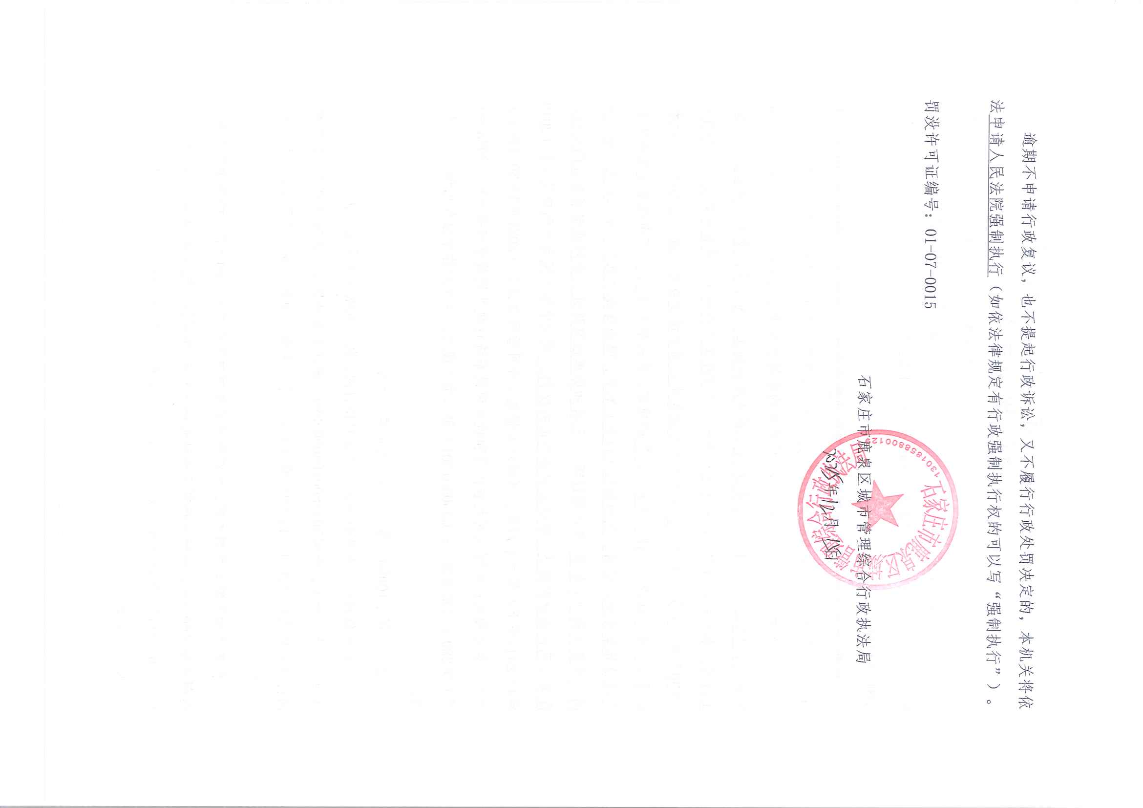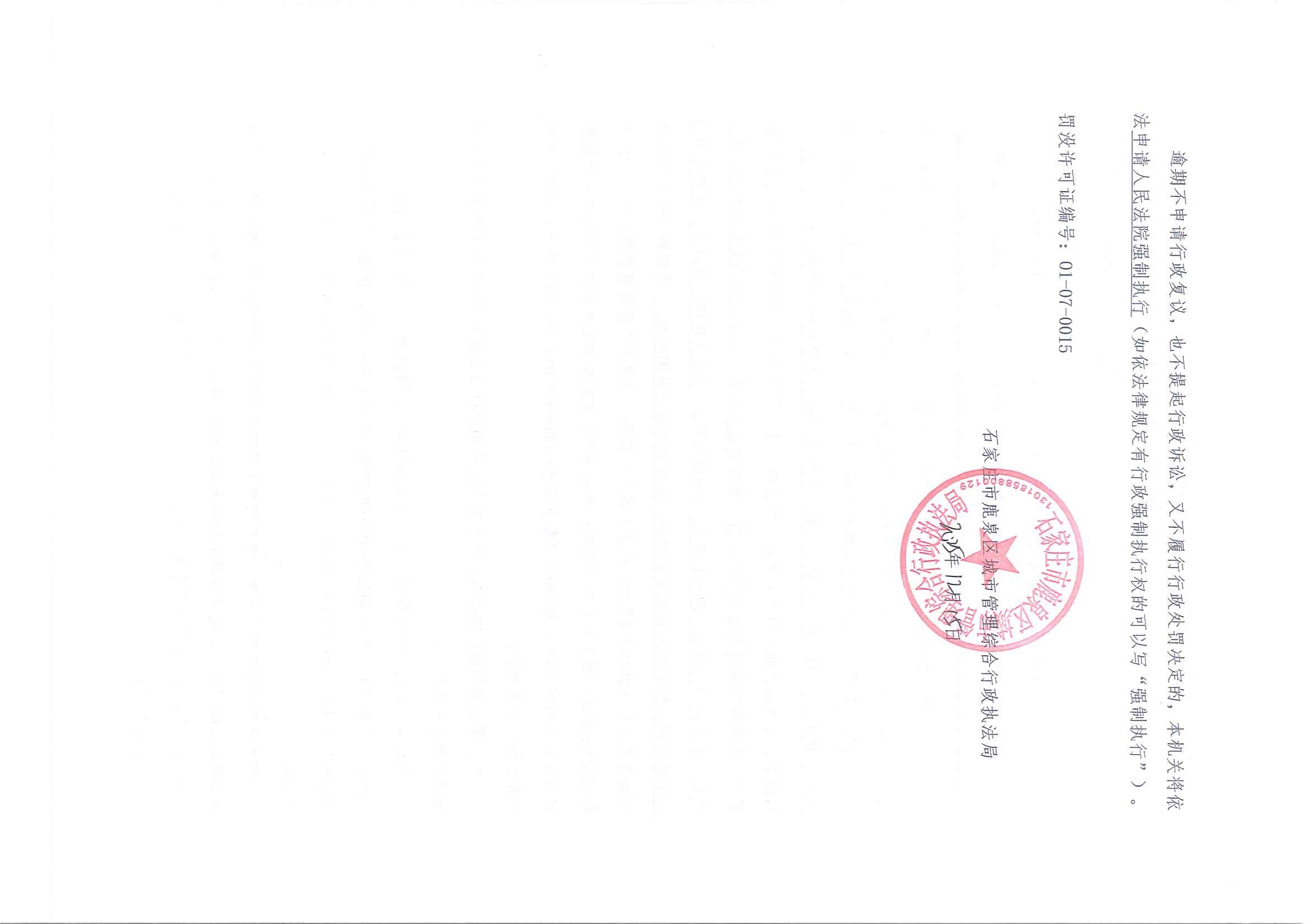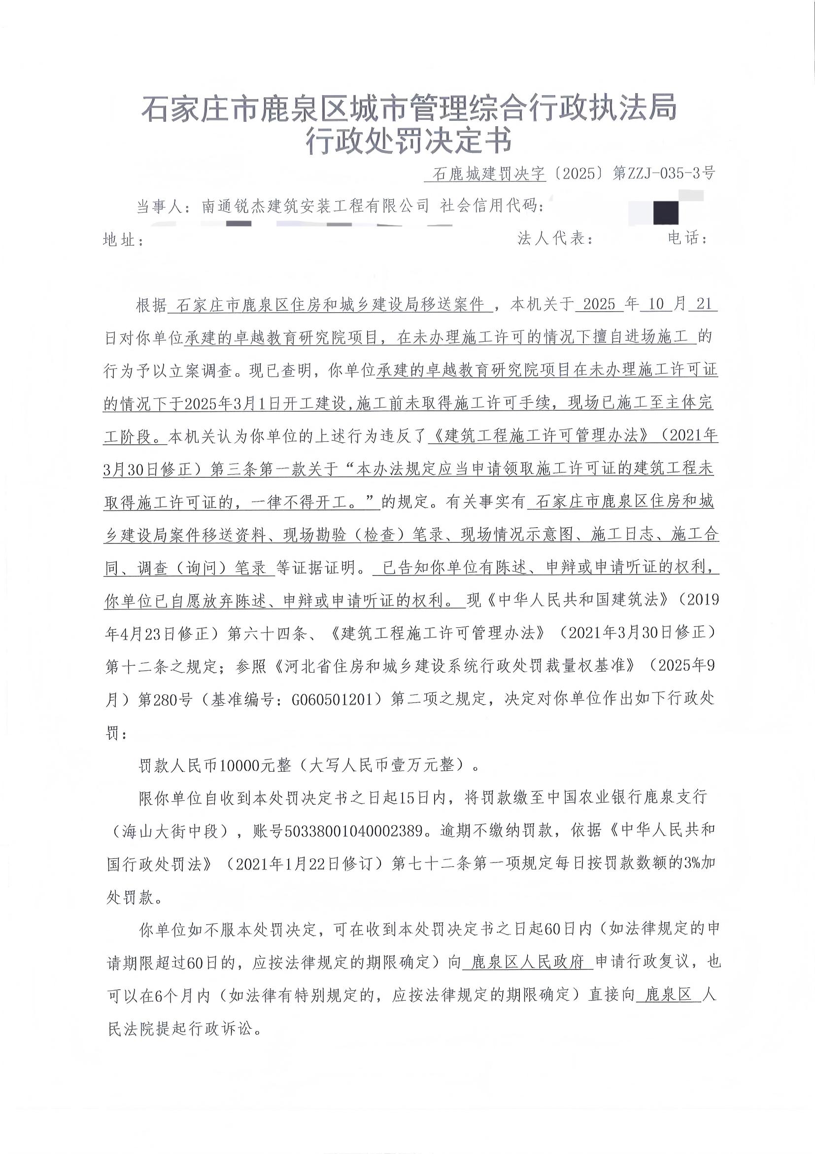 石家庄市鹿泉区城市管理综合行政执法局2025年度行政处罚公示ZZJ-035