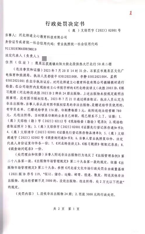 河北师道立心教育科技有限公司行政处罚决定书公开