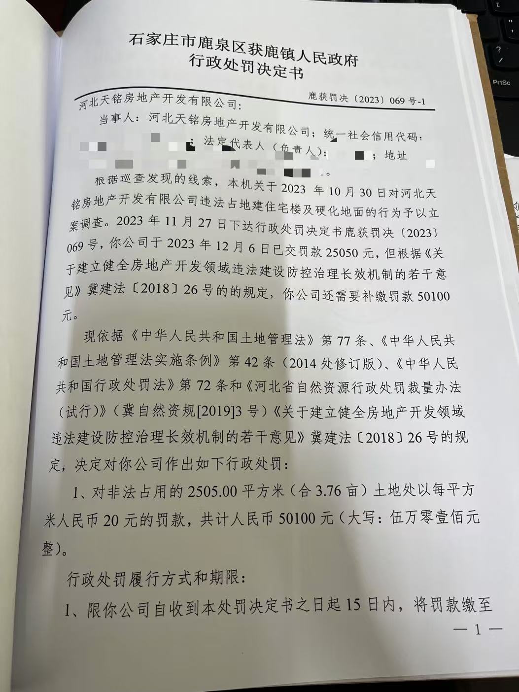 河北天铭房地产开发有限公司违法占地建住宅楼及硬化地面案
