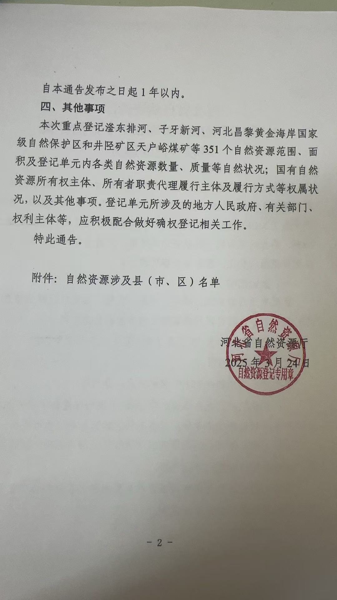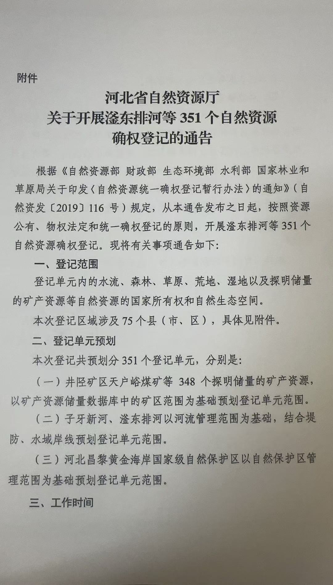河北省自然资源厅关于开展滏东排河等351个自然资源确权登记的通告