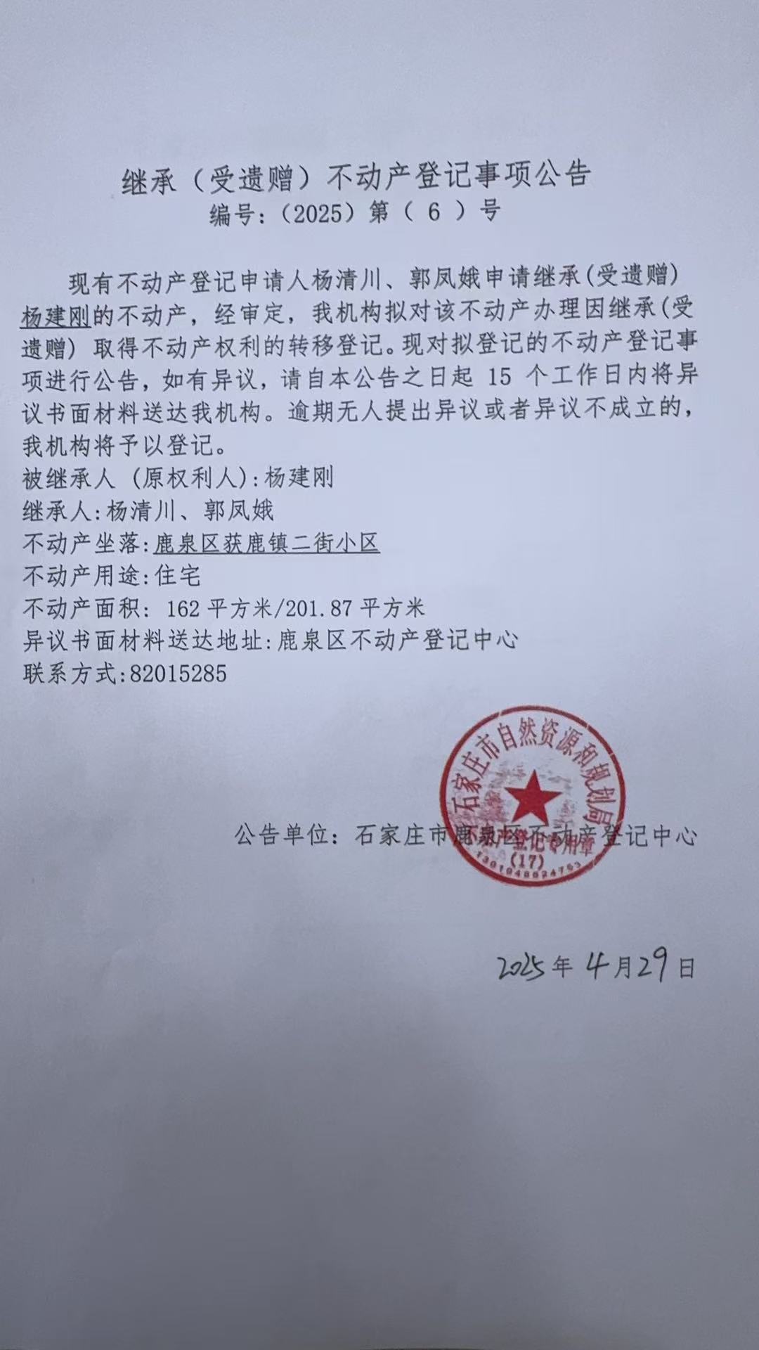 继承(受遗赠)不动产登记事项公告2025第(6)号