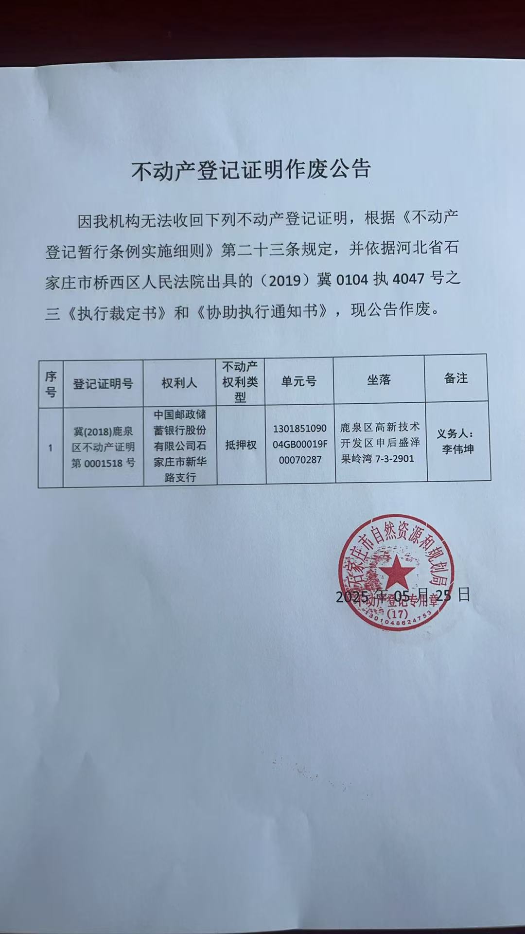 不动产登记证明作废公告(李伟坤)