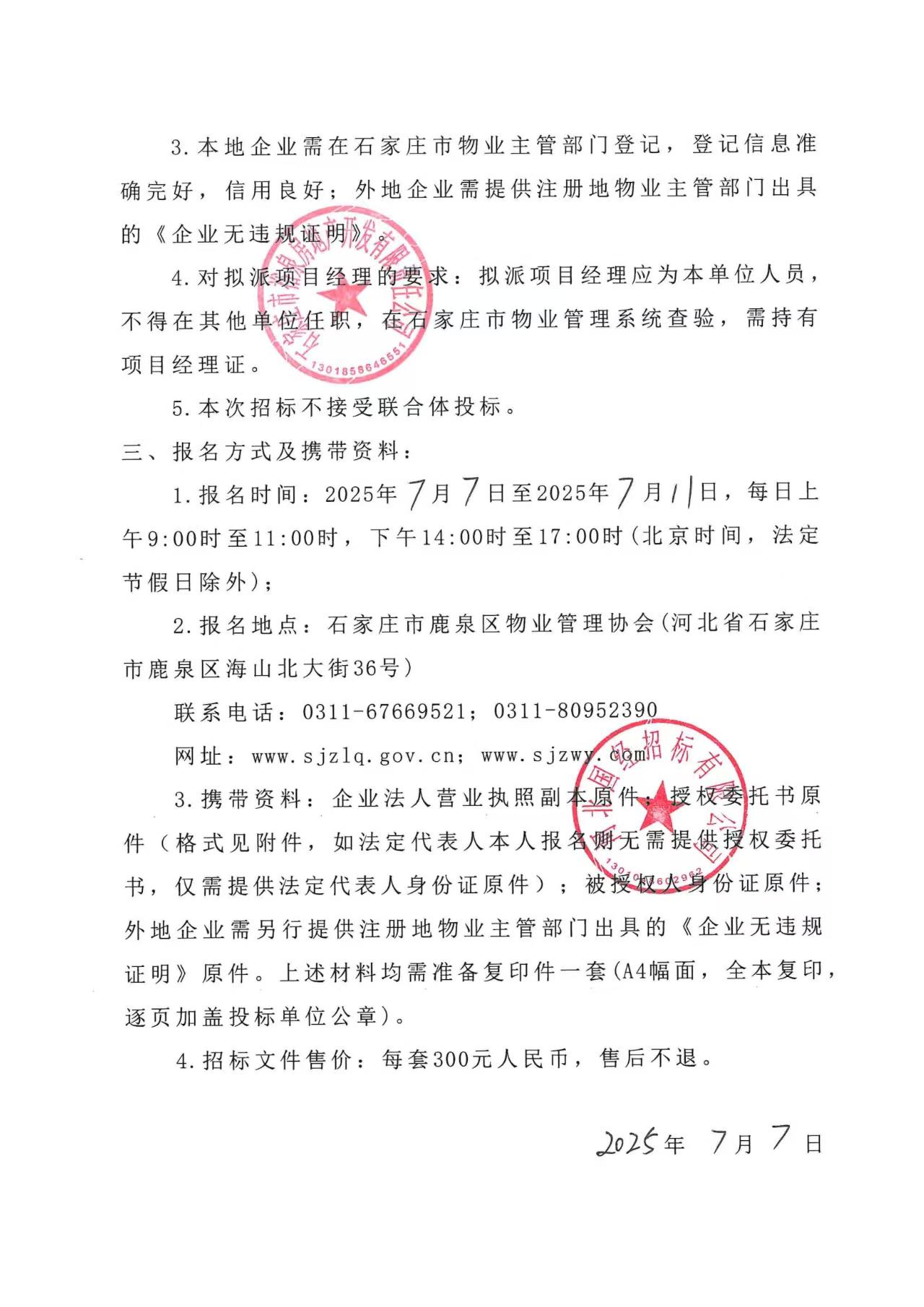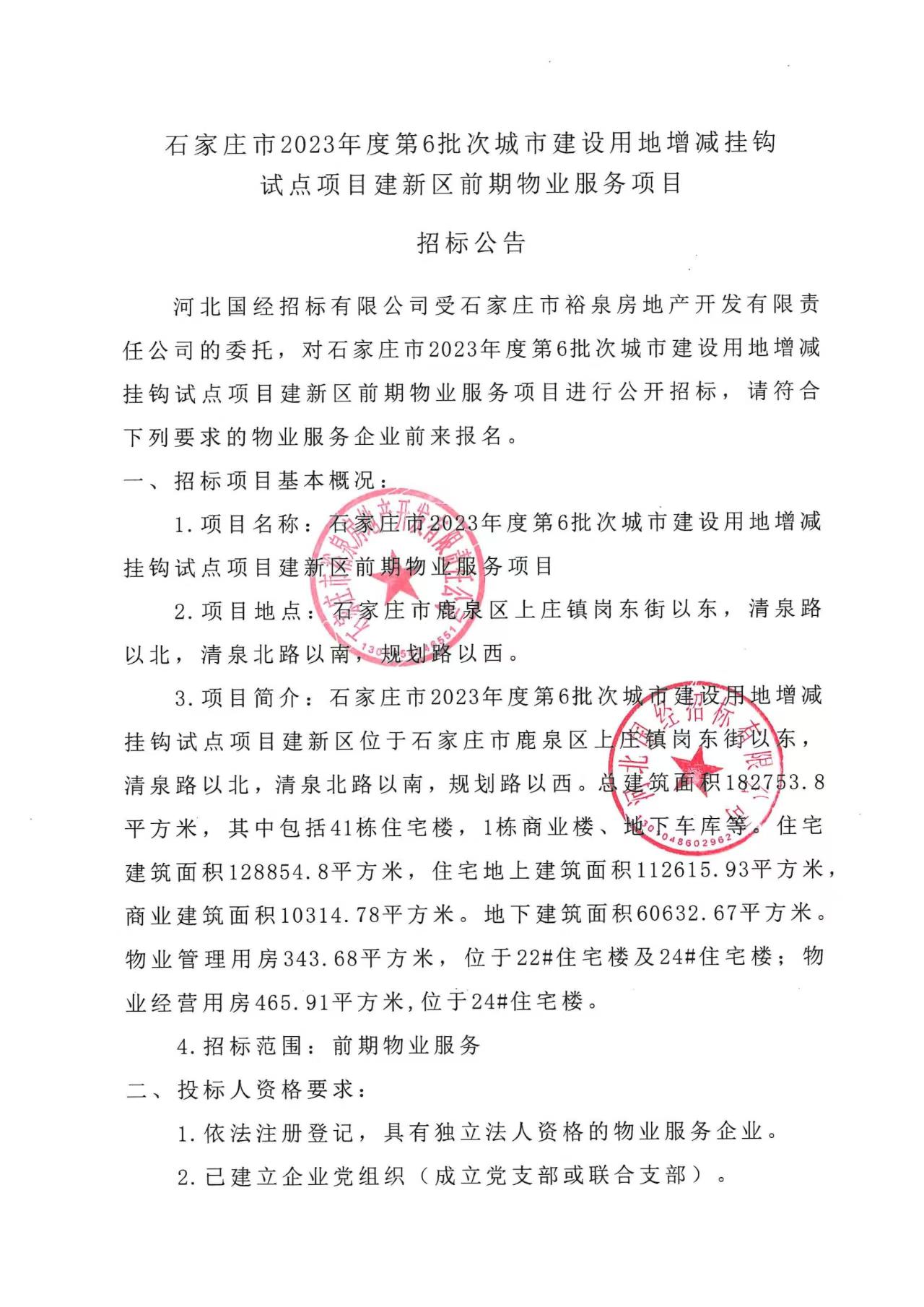 石家庄市2023年度第6批次城市建设用地增减挂钩试点项目建新区前期物业管理招标公告