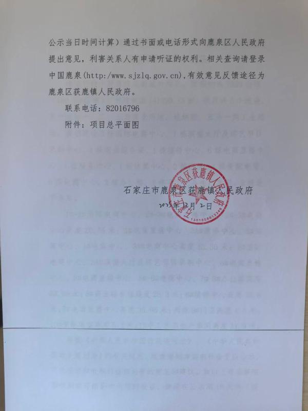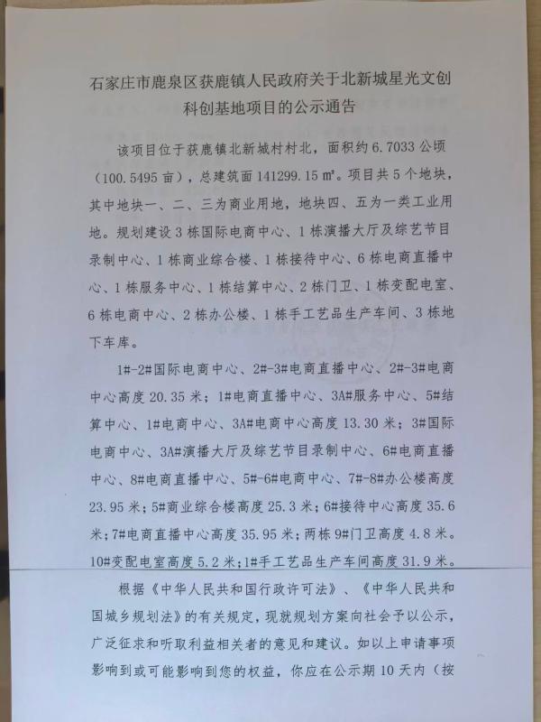 石家庄市鹿泉区获鹿镇人民政府关于北新城星光文创科创基地项目的公示公告