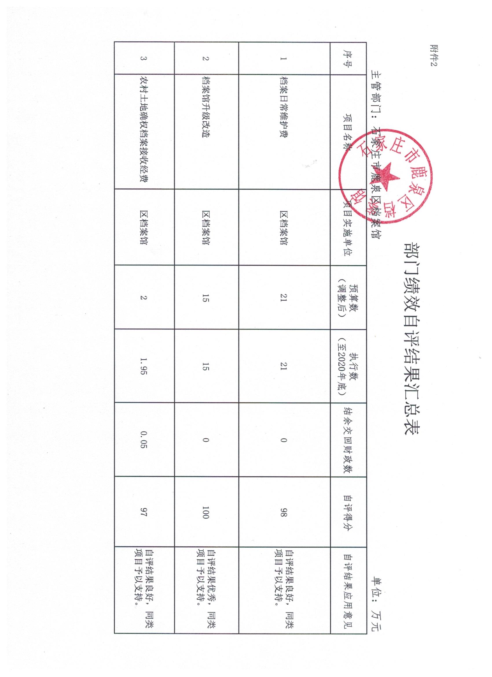 石家庄市鹿泉区档案馆2020年预算项目绩效自评结果汇总表