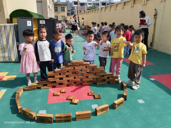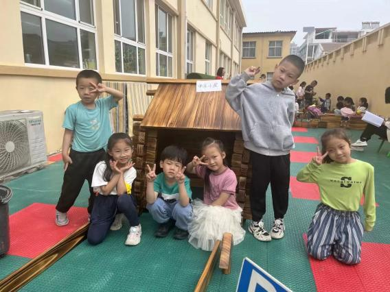 大型户外炭烧积木建构游戏活动是园所户外游戏活动特色项目,每月一个活动主题,游戏活动从经验铺垫、绘制草图、依图搭建、合理调整、建构表演等流程,将健康、数学、科学、语言、艺术、社会等各领域知识相融合,幼儿在亲身体验和实际操作中,逐步养成积极主动、认真专注、敢于尝试、乐于想象和创造等良好的学习品质。