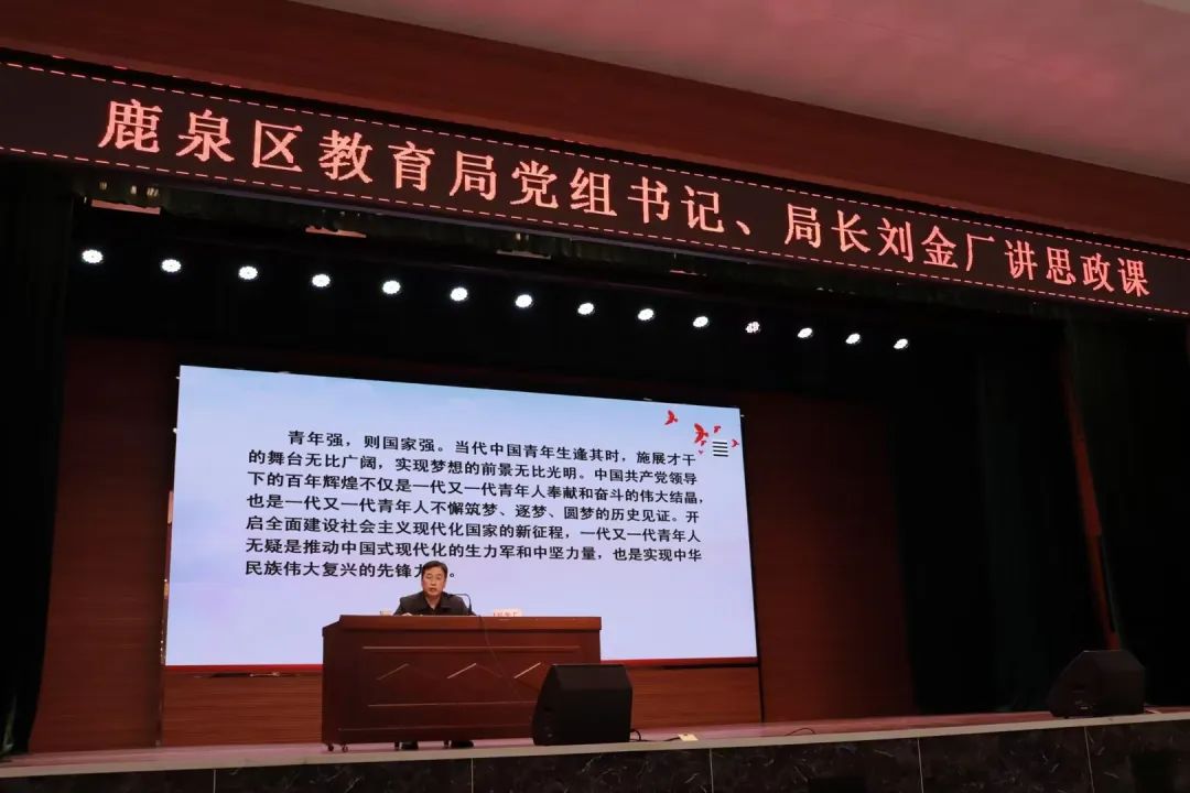 11月21日下午,鹿泉区教育局党组书记、局长刘金厂到区职教中心以“砥砺奋进,在推进中国式现代化中贡献青春力量”为题,给500多名师生上了一堂内涵丰富、意义深远的思政课。