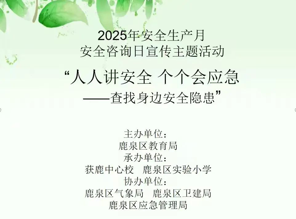 今年6月是全国第24个“安全生产月”,主题是“人人讲安全、个个会应急--查找身边安全隐患”。为普及安全生产知识,切实加强学校安全教育和管理工作,6月16日上午,区教育局、区应急局、区气象局、区卫健局、获鹿中心校与鹿泉区实验小学联合开展安全生产咨询日活动。