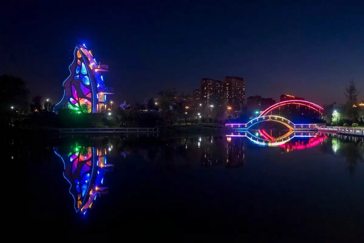在园中,最惹眼的要数那“一帆风顺”景观塔,登上塔顶,一览城区美景,山水林田湖尽收眼底。