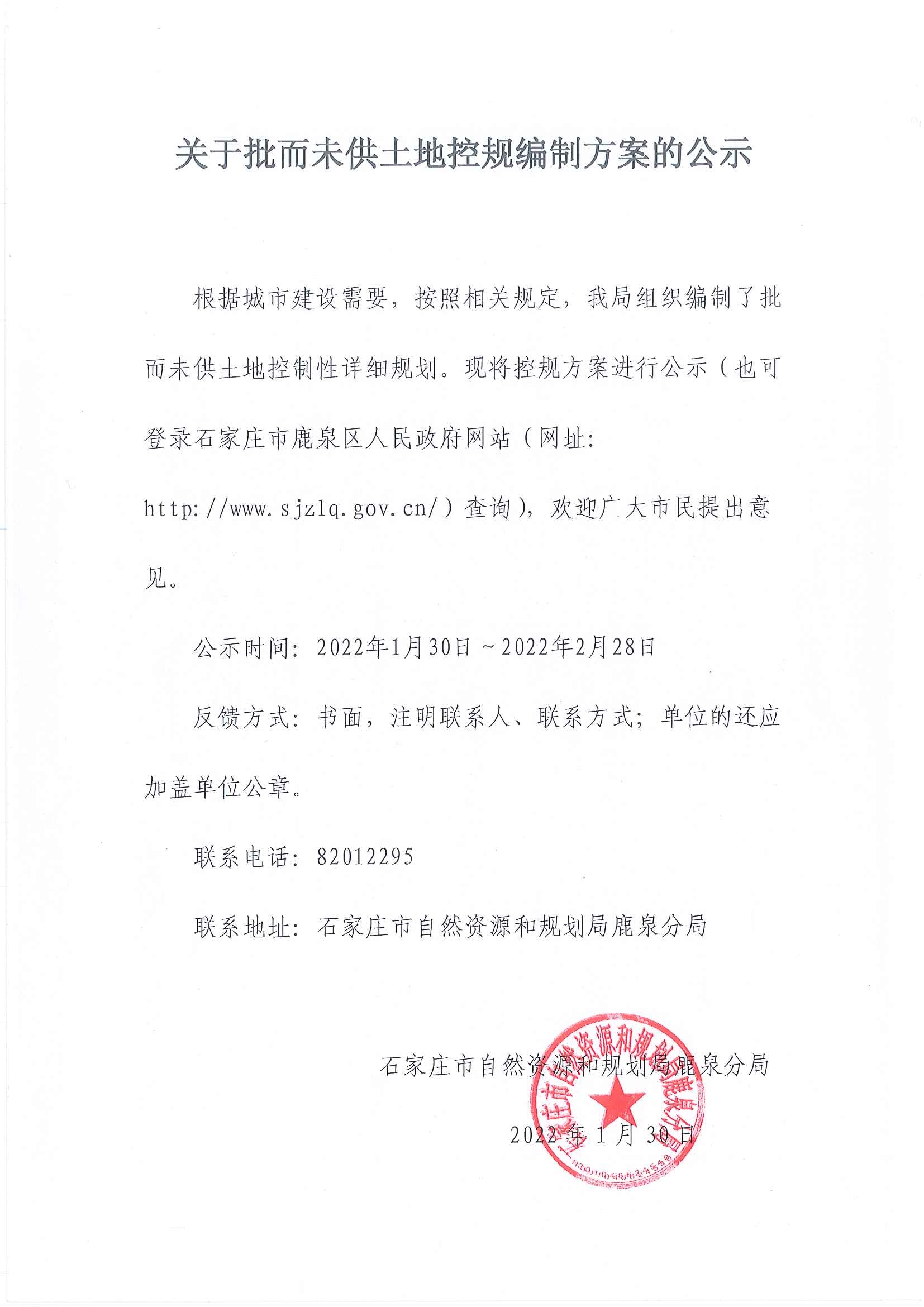 关于批而未供土地控规编制方案的公示