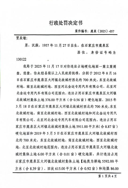 行政处罚决定书鹿泉[2025]-057