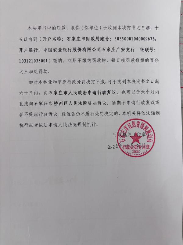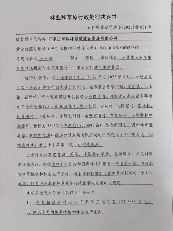 林业和草原行政处罚决定书石自鹿林草罚决字[2026]第001号