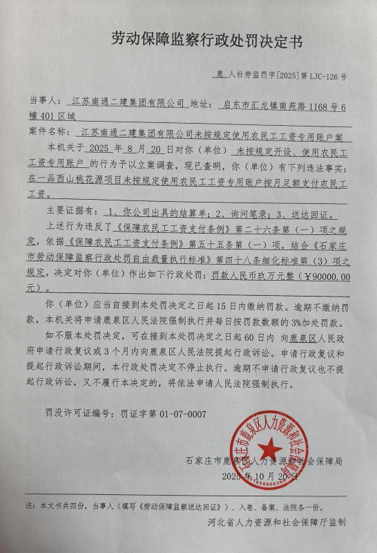 鹿人社劳监罚字〔2025〕第LJC-126号