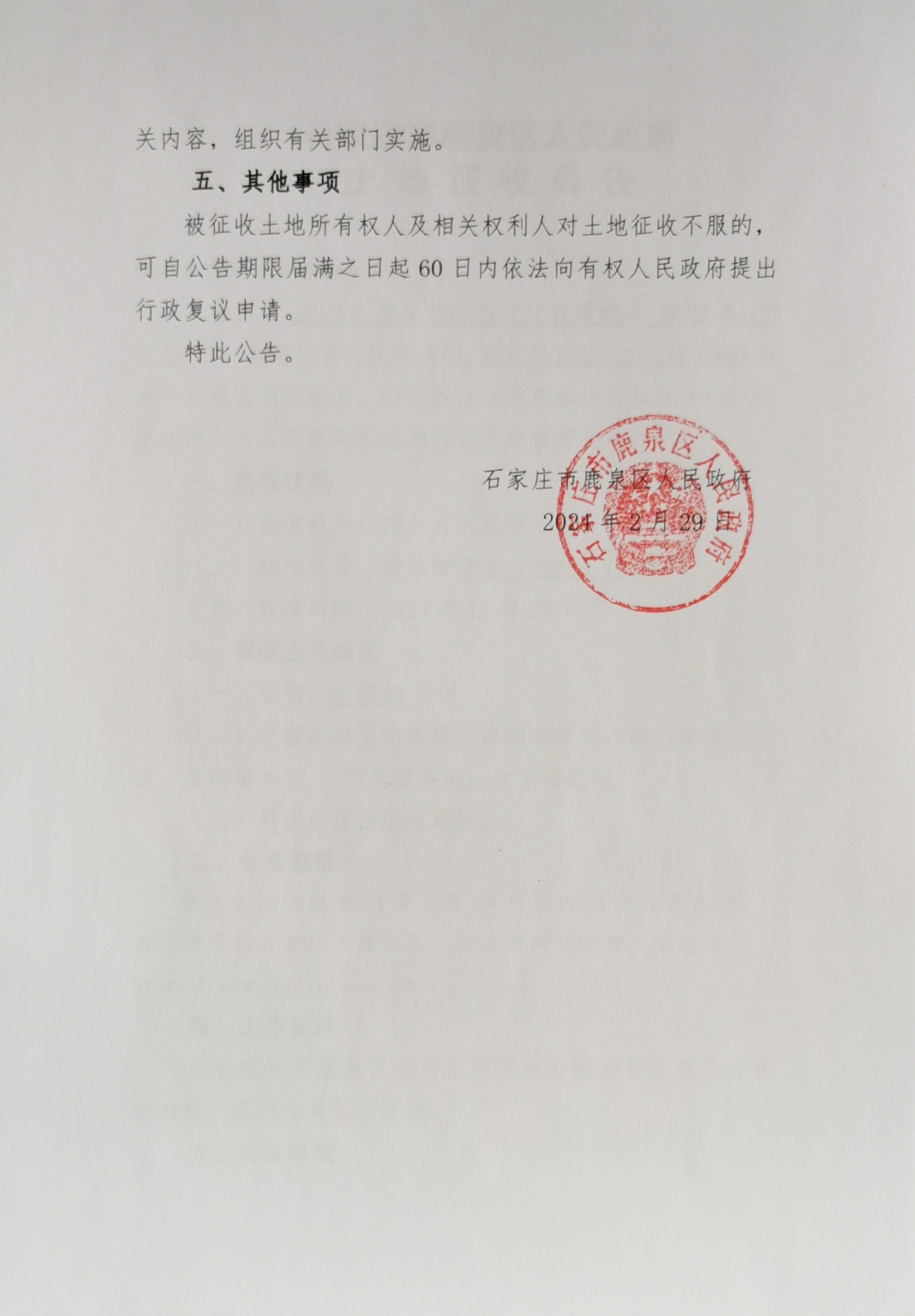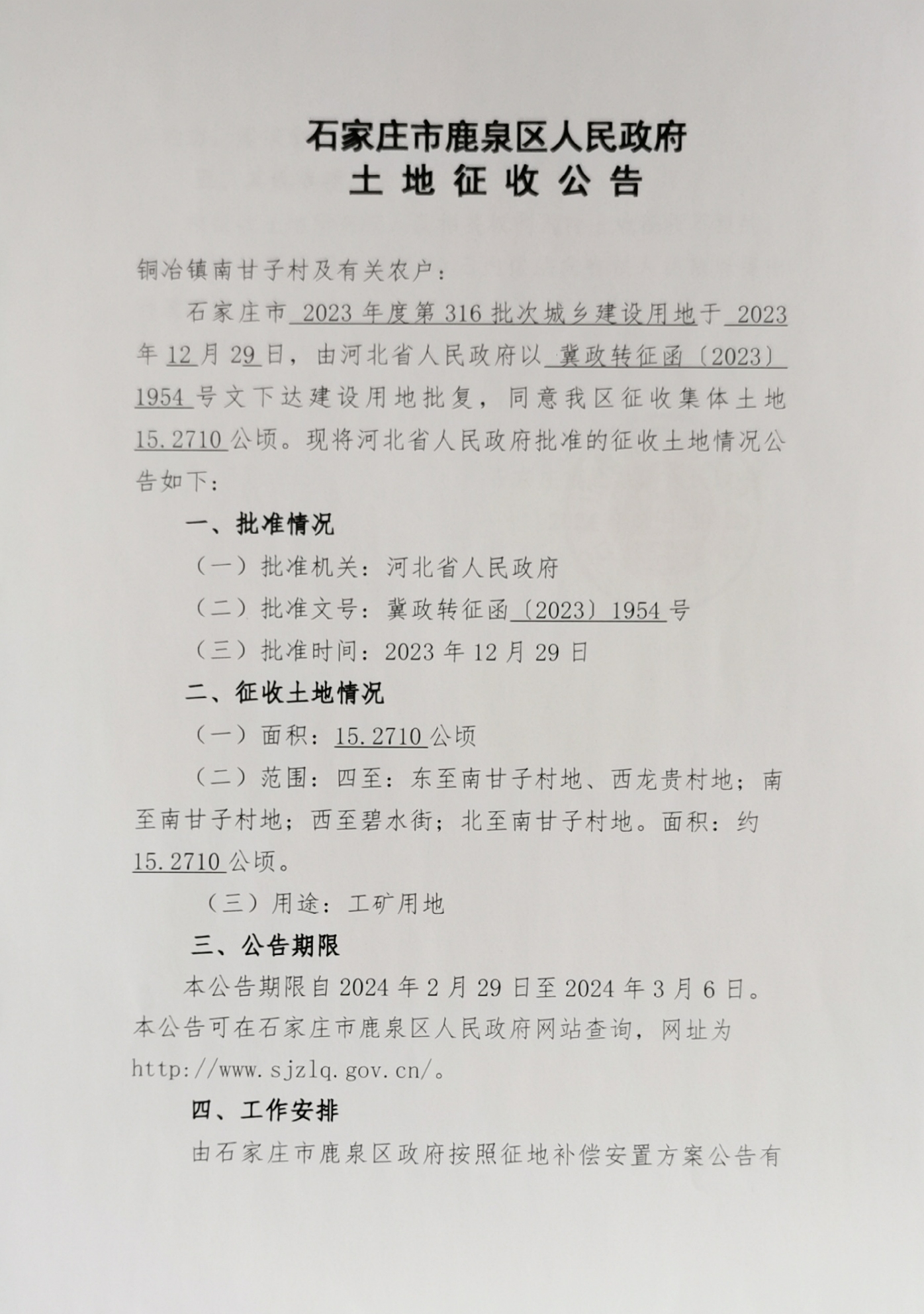 石家庄市鹿泉区人民政府土地征收公告(铜冶镇南甘子村)