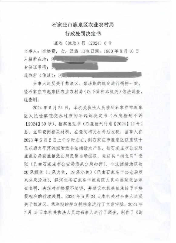 鹿泉区农业农村局行政处罚
