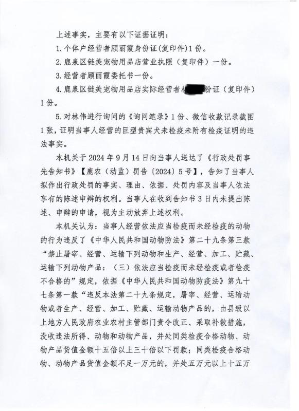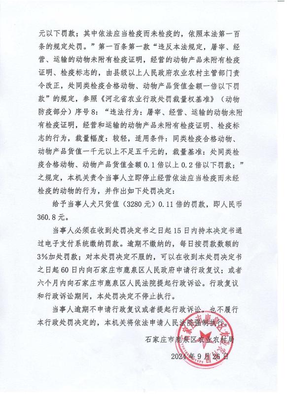 鹿泉区农业农村局行政处罚决定书