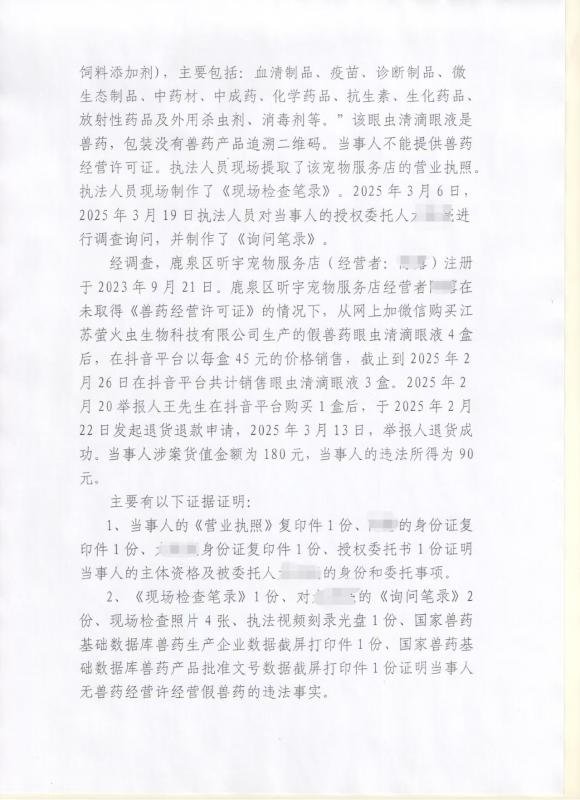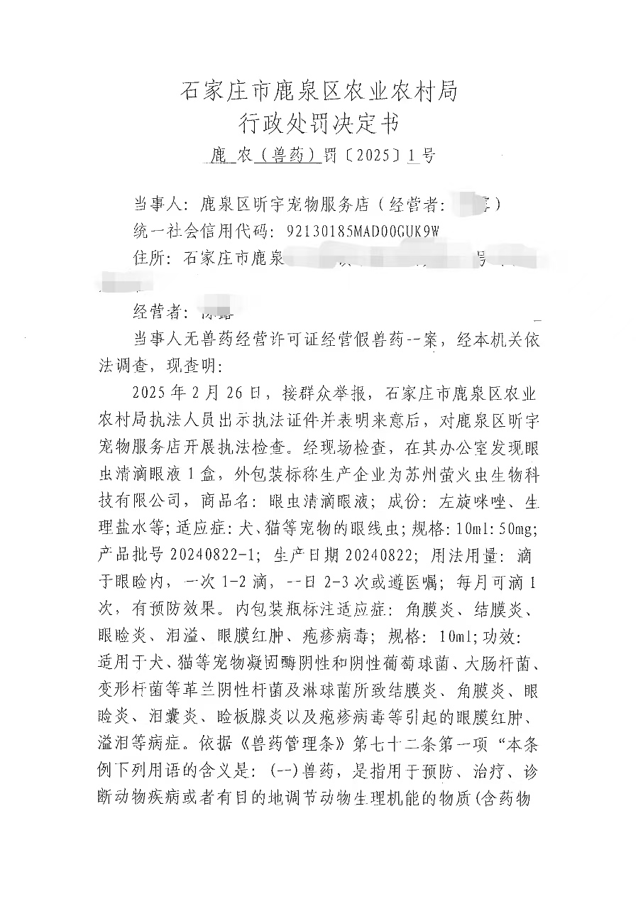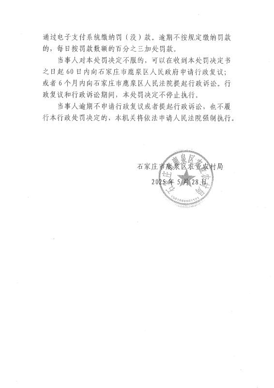 鹿泉区农业农村局行政处罚决定书