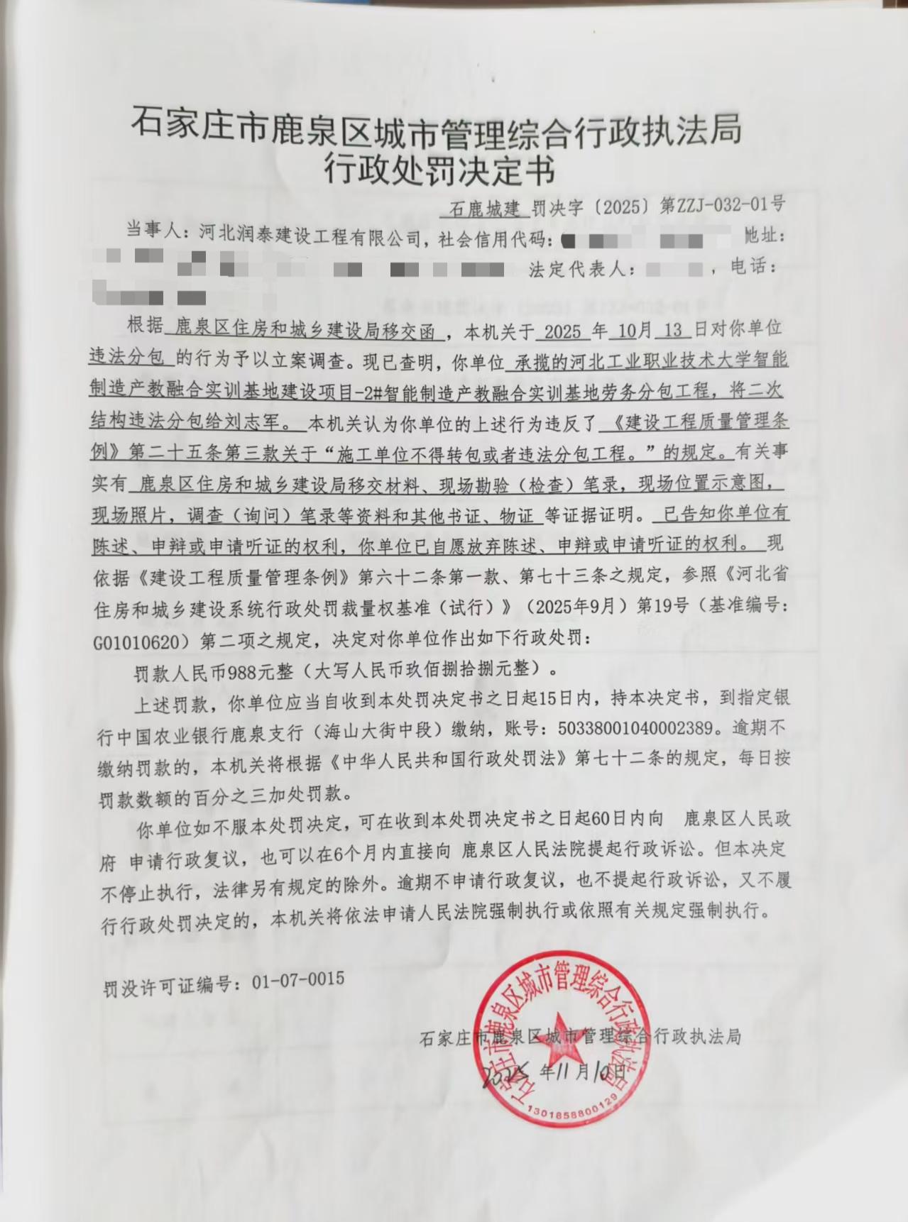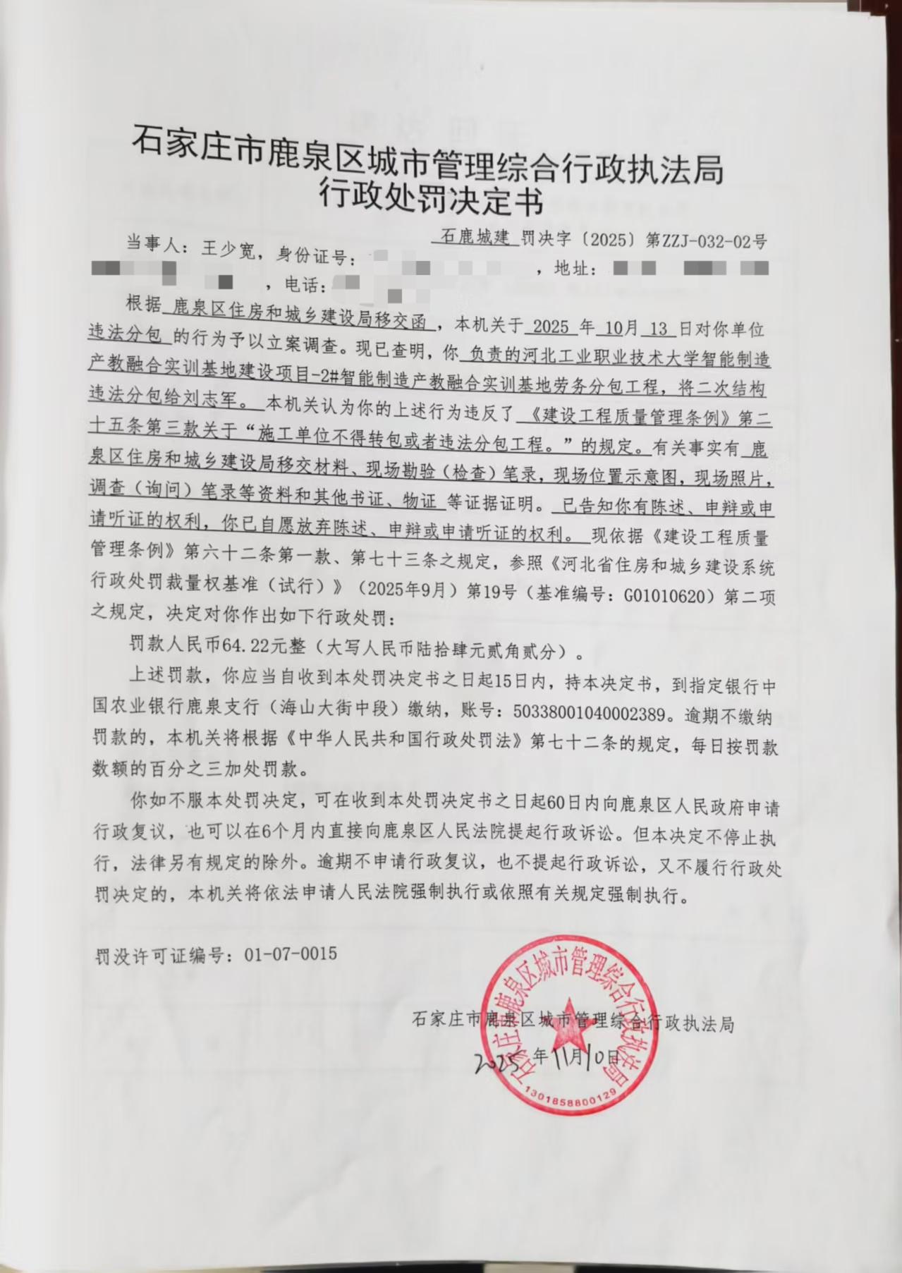 石家庄市鹿泉区城市管理综合行政执法局2025年度行政处罚公示ZZJ-032