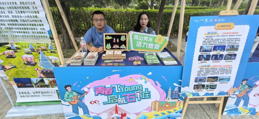 由石家庄市文化广电和旅游局与共青团石家庄市委主办,石家庄文旅走进驻石高校宣传推广活动在河北经贸大学正式启动。活动现场,打造了景区展示区、特色文创产品、文旅市集、打卡合影区等区域,通过展板、图片、视频等形式,展现了西柏坡、赵州桥、正定古城等石家庄著名景区,吸引了不少学生驻足观看。鹿泉文旅推介积极参加活动并设置展台。