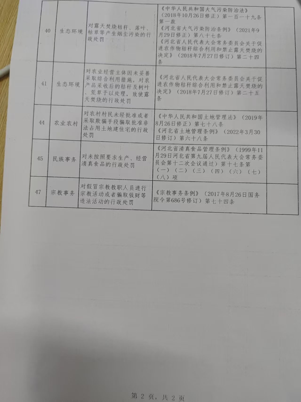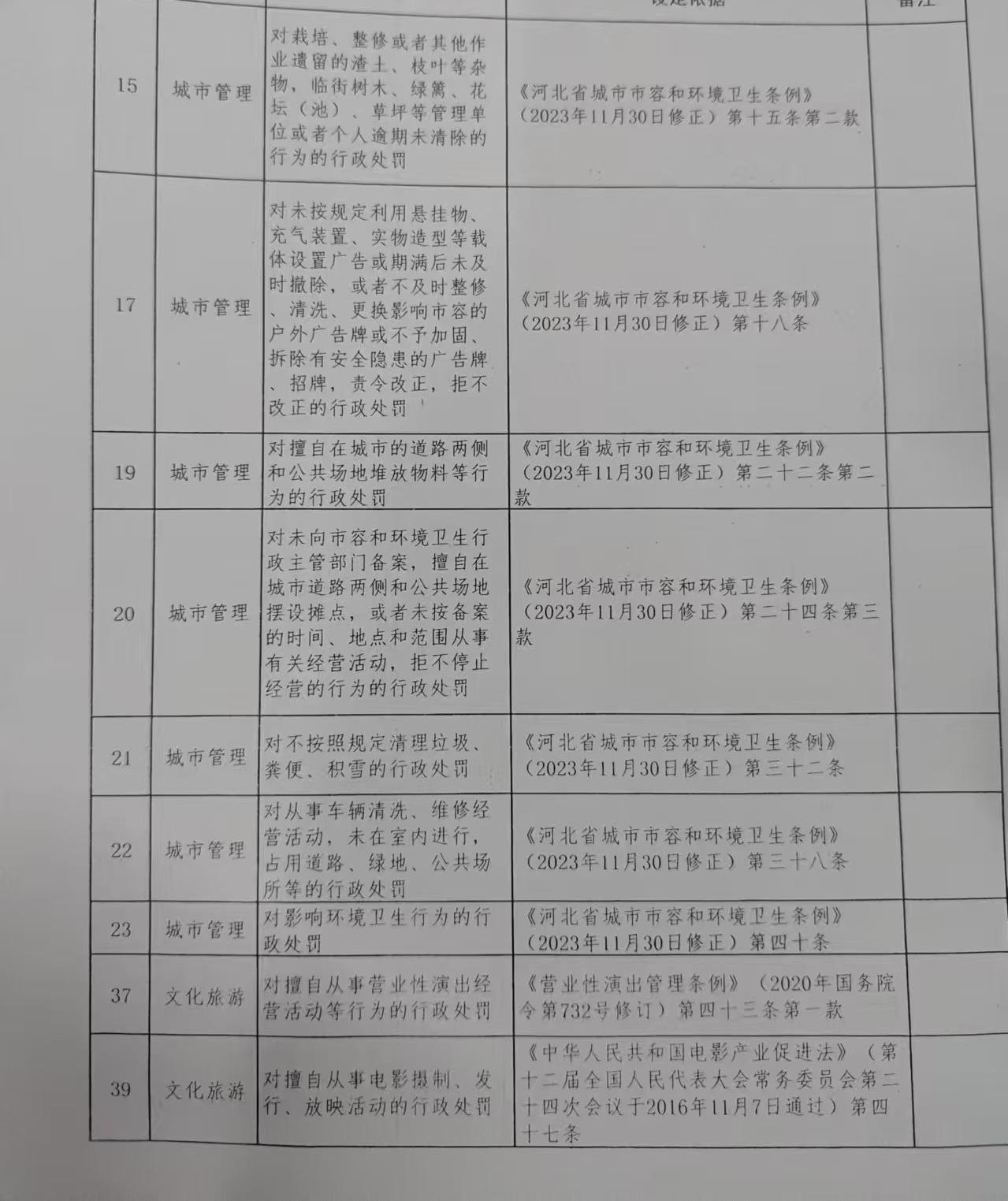 石家庄市鹿泉区寺家庄镇行政执法事项清单