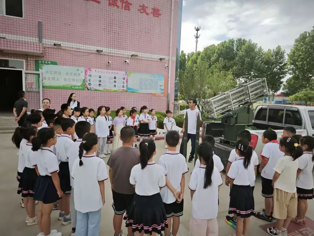 各单位工作人员向学生发放宣传册,组织学生参观人工增雨发射装置以及应对自然灾害、逃生避险的安全手册,让学生将安全知识和意识带回家中,小手拉大手,让家长成为学校安全教育的有力支持者和参与者。