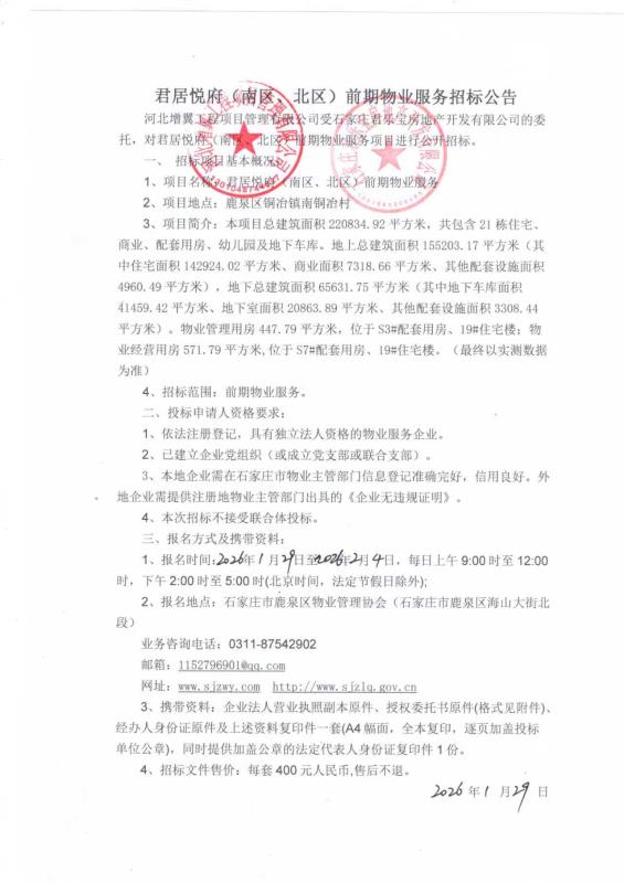 君居悦府(南区、北区)前期物业服务招标公告